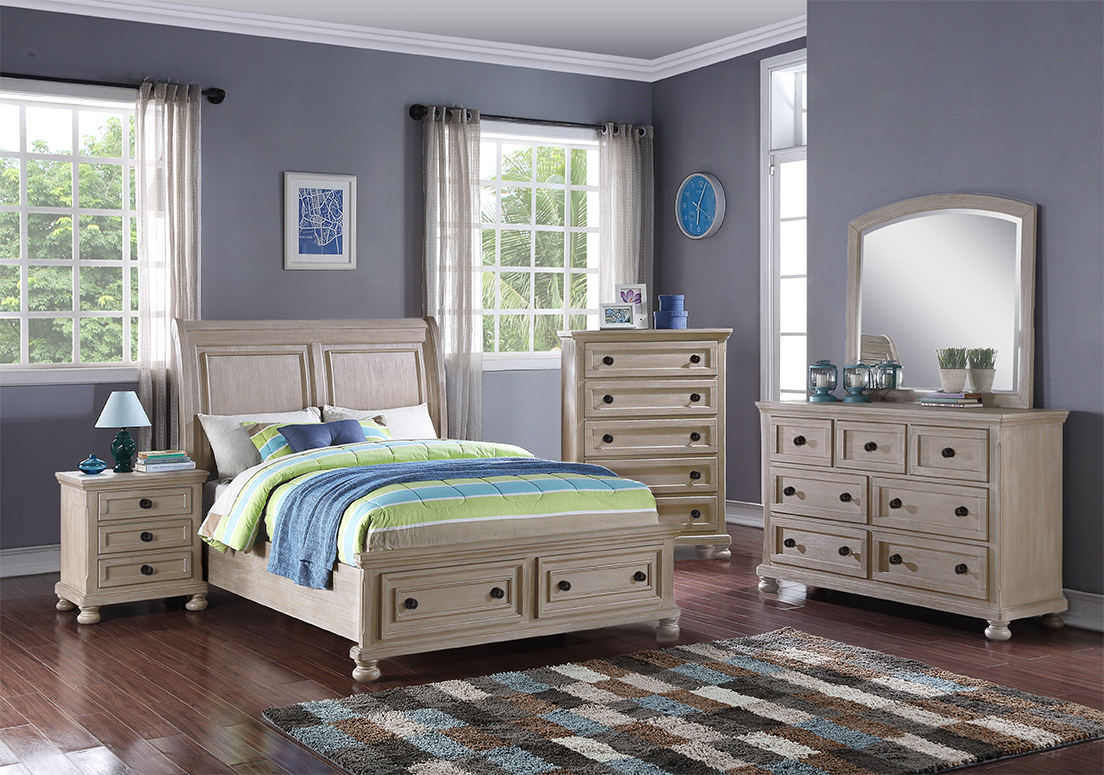 The Allegra collection is a masterful blend of classic and modern design, offering a versatile and timeless aesthetic that seamlessly fits both traditional and contemporary interiors. Expertly crafted from solid Mindi wood, engineered woods, and wood veneers, each piece in the collection—including the Sleigh Storage Bed, Dresser, Mirror, Nightstand, Chest, and Media Chest—showcases the natural beauty of Mindi’s rich grain while providing exceptional durability and resistance to decay.
