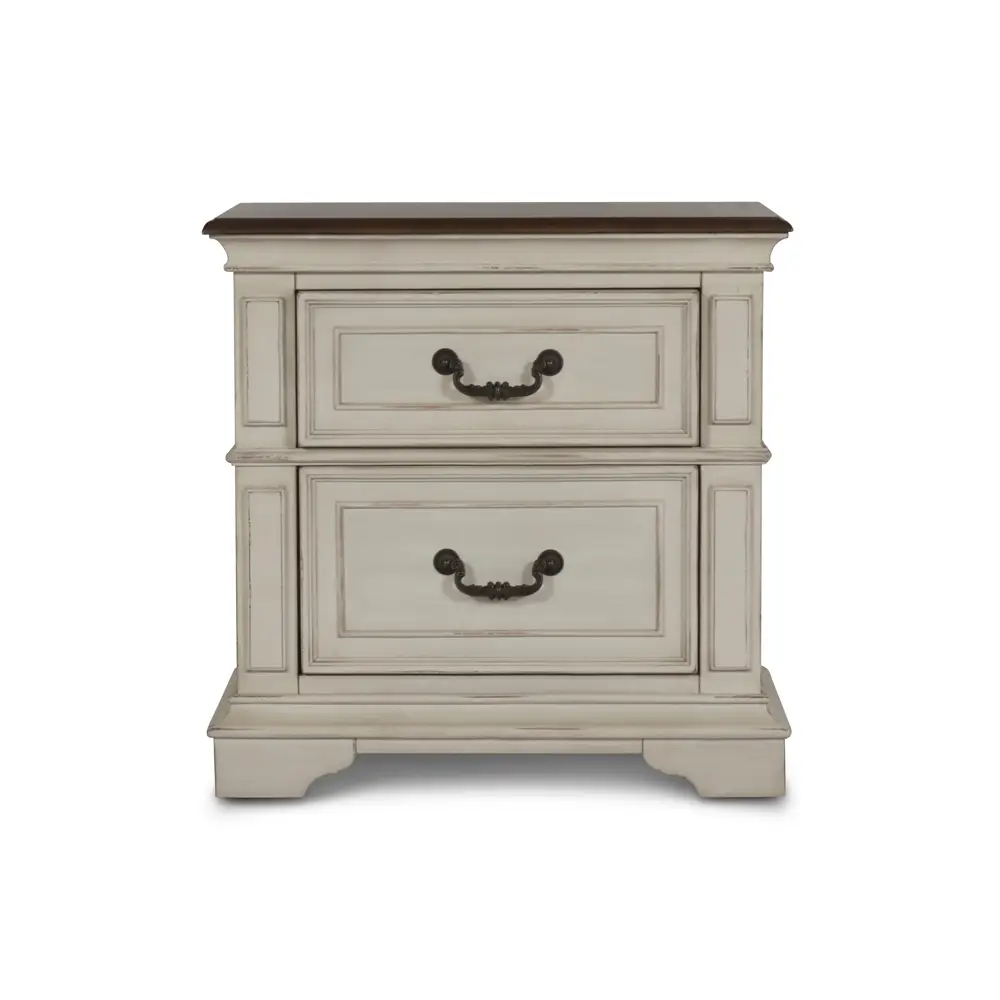 The Anastasia collection adds an old-fashioned romance to your bedroom , crafted of solid poplar and oak veneer, ensuring unparalleled durability. The heirloom finish, achieved through a meticulous multi-step process involving wire brushing, clefts, rasping, threading, and rub throughs, results in a vintage look with each piece being unique.
