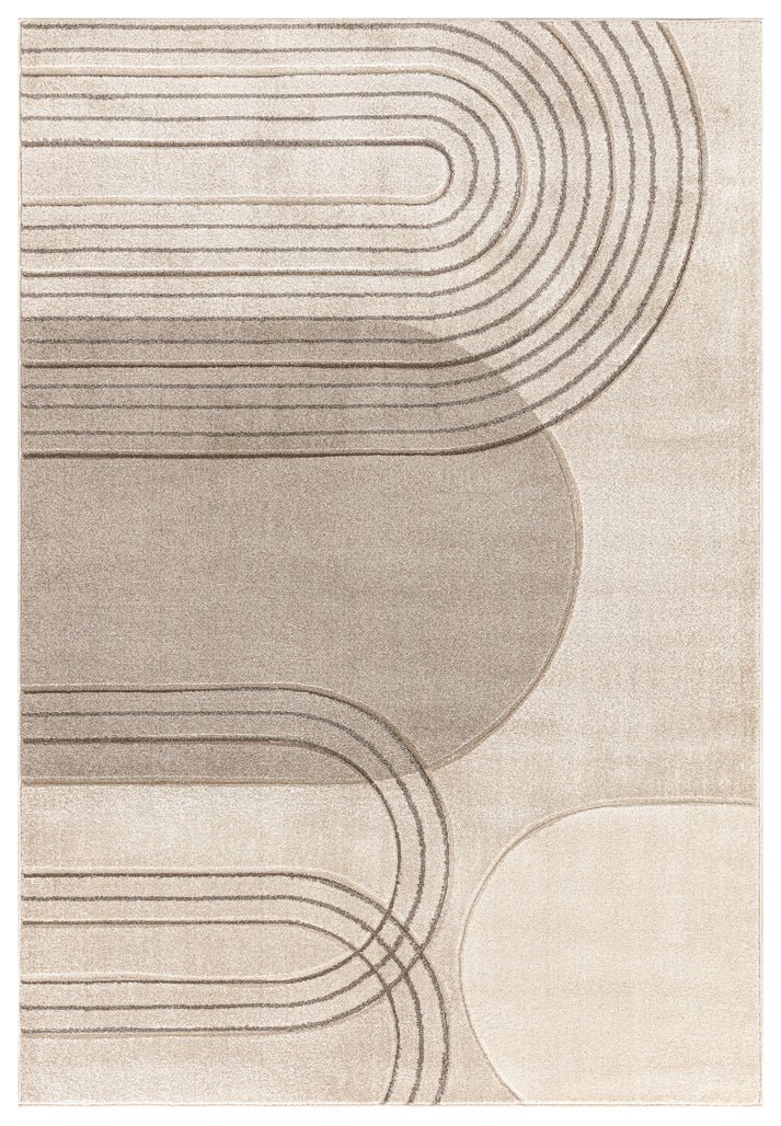 - 1 x Cream Beige Textured Geometric Contemporary Rug