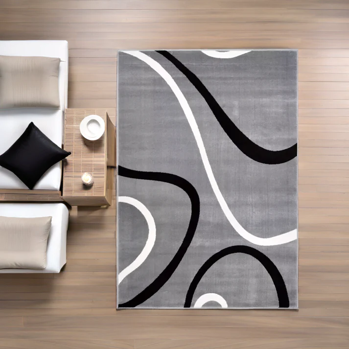 - 1 x Turkish Light Gray Spirals Contemporary Rug